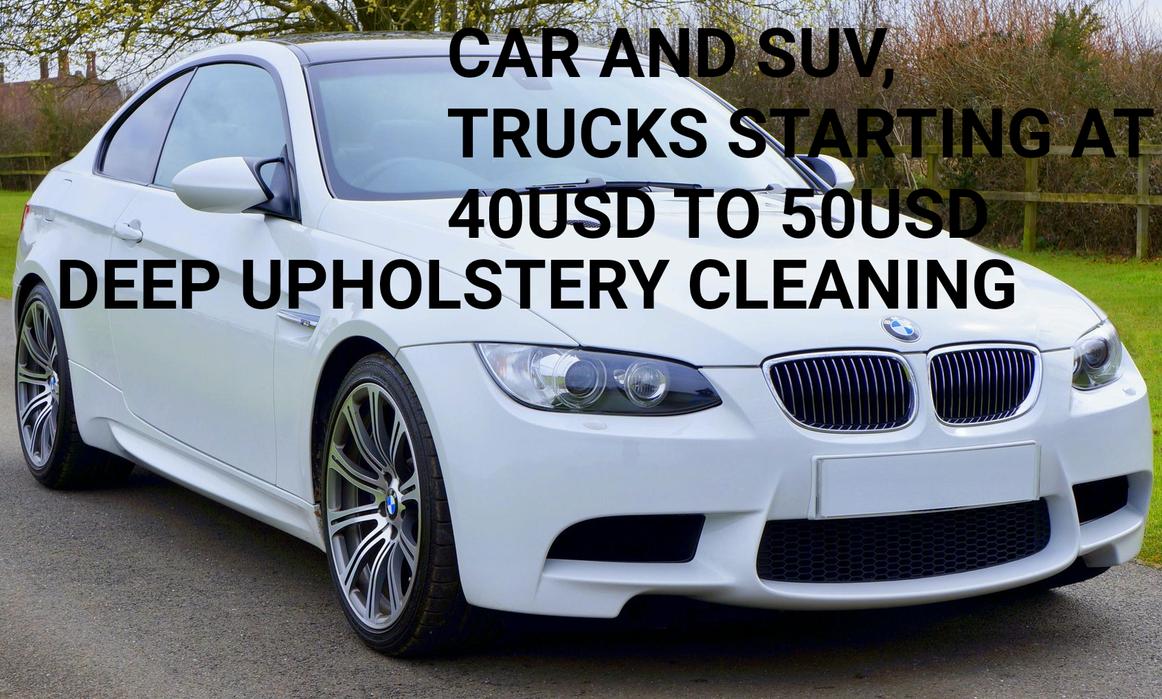 WE ARE THE CHEAPIEST AUTOMOTIVE UPHOLSTERY CLEANER AROUND THAT RESULTS SPEAK FOR THEMSELVES. ITS A REASON WHY YOU NEVER HAD YOUR CAR DETAILED>>>>IT COST HUNDRED. NOT ANYMORE FOR A LIMITED TIME ONLY WITH THIS PROMOTION 40USD SPECIAL, THATS RIGHT 40USD 20 minute sessions GETS YOUR FRONT SEATS AND REAR SEAT ALONG WITH ALL FLOOR BOARD,Armor all leather or vinyl,Deodorize carpet, upholstery